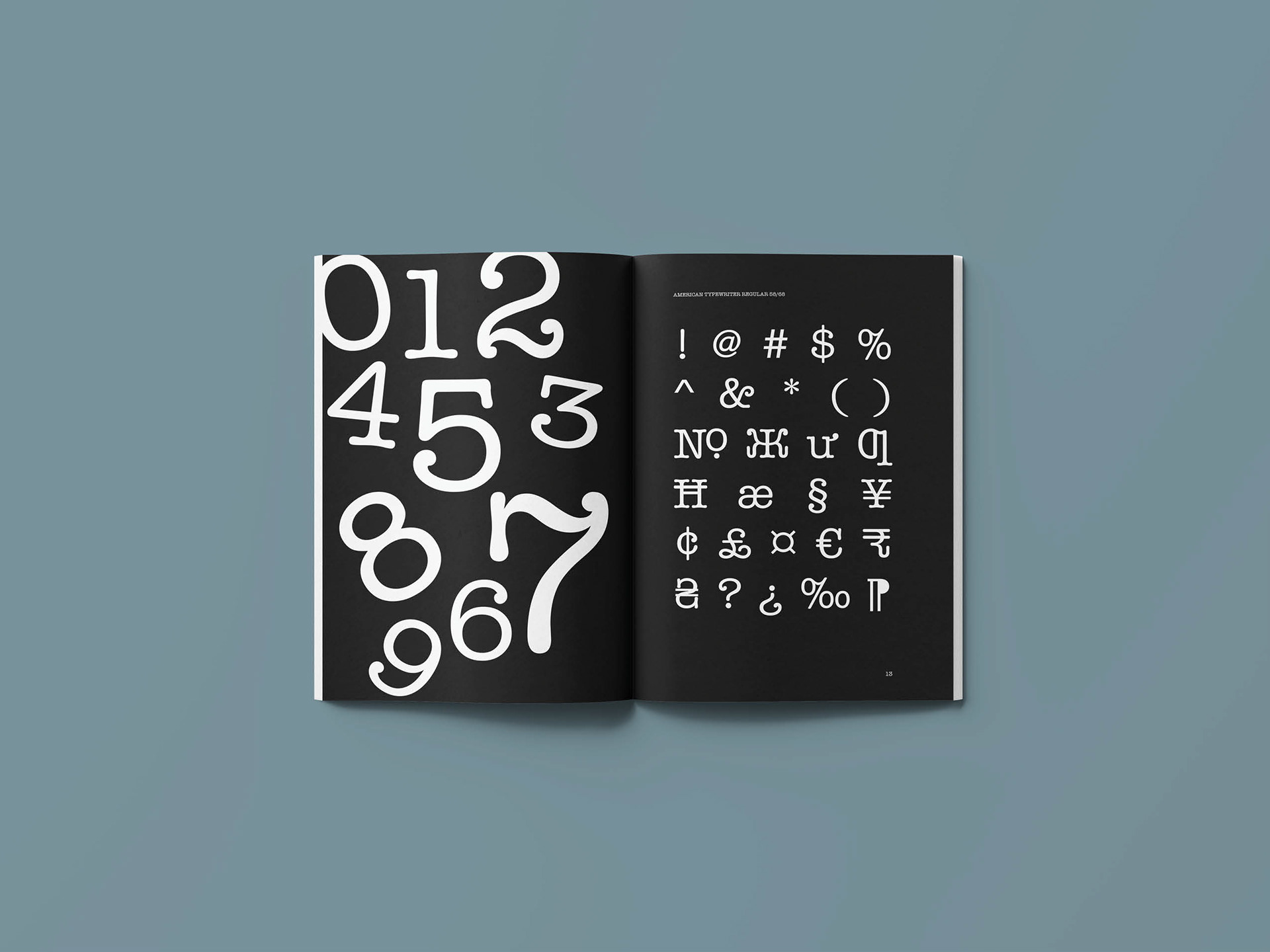 Type specimen booklet for typeface American Typewriter. The objective was to create a type specimen booklet that demonstrates the range of a typeface, applied to headlines and text in a variety of sizes.